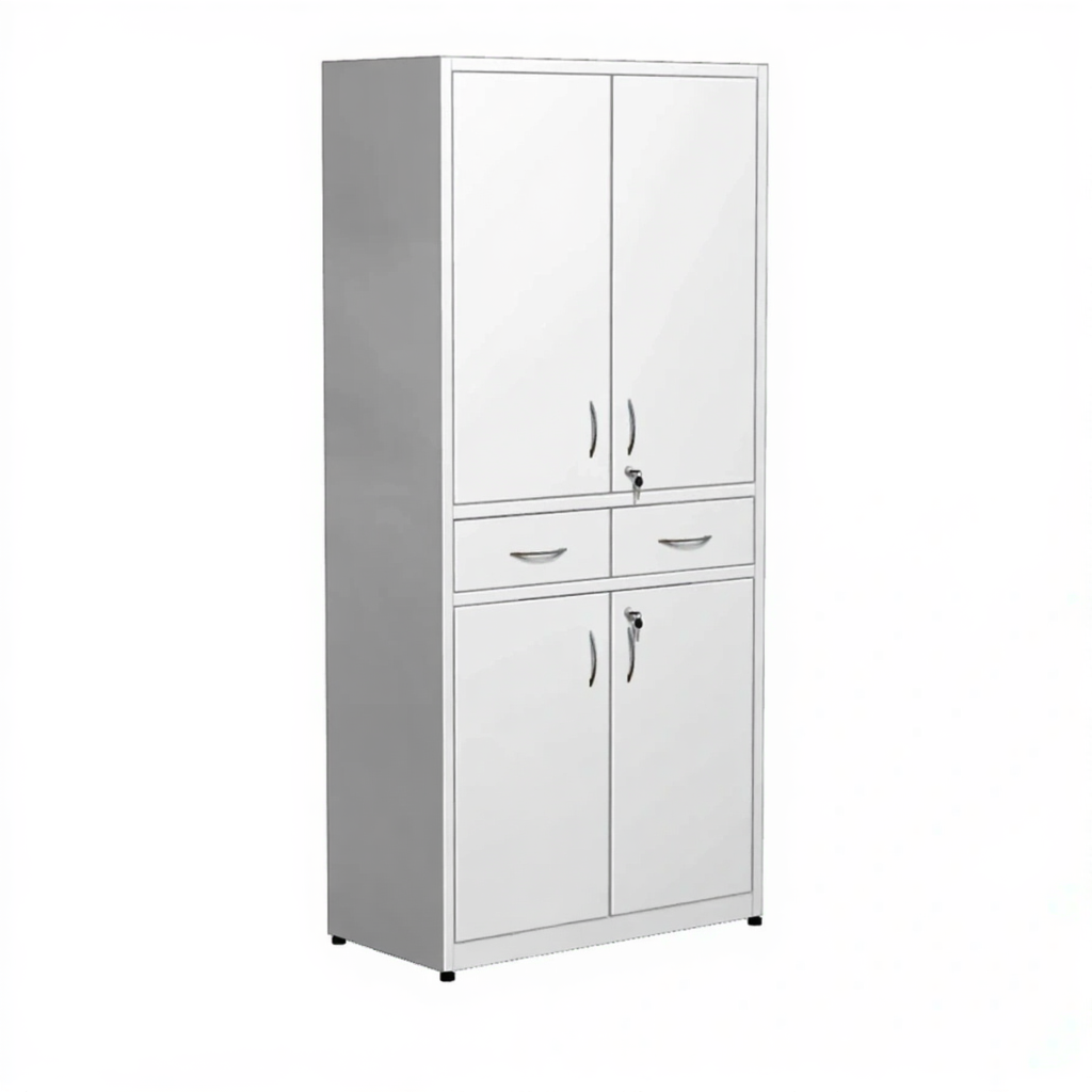 • Наполнение верхней секции: 2 дверки металл, ручки, замок, 2 регулируемые металлические полки.