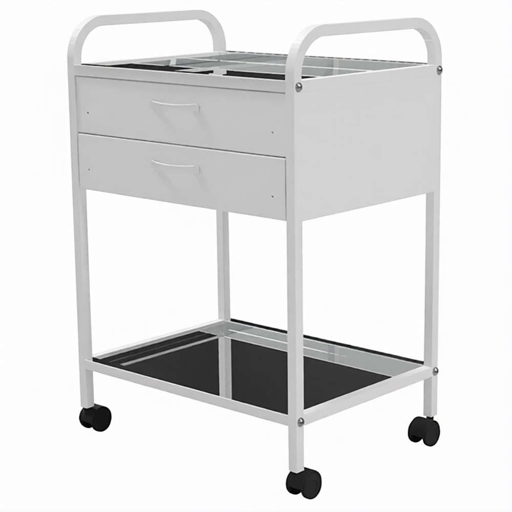 Стол медицинский инструментальный СМИ-02-02 (полки нерж., колёса серая резина) предназначен для размещения инструмента, лекарственных препаратов и приборов.