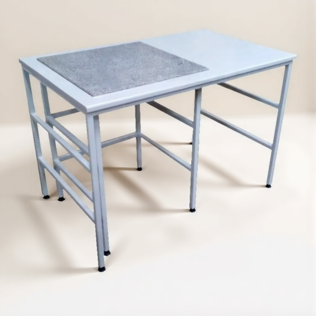 - Антивибрационная защита — столешница из постформинга 26 мм с встроенным натуральным гранитом 400х400 мм толщиной 30 мм на демпферах обеспечивает стабильность и точность взвешивания.