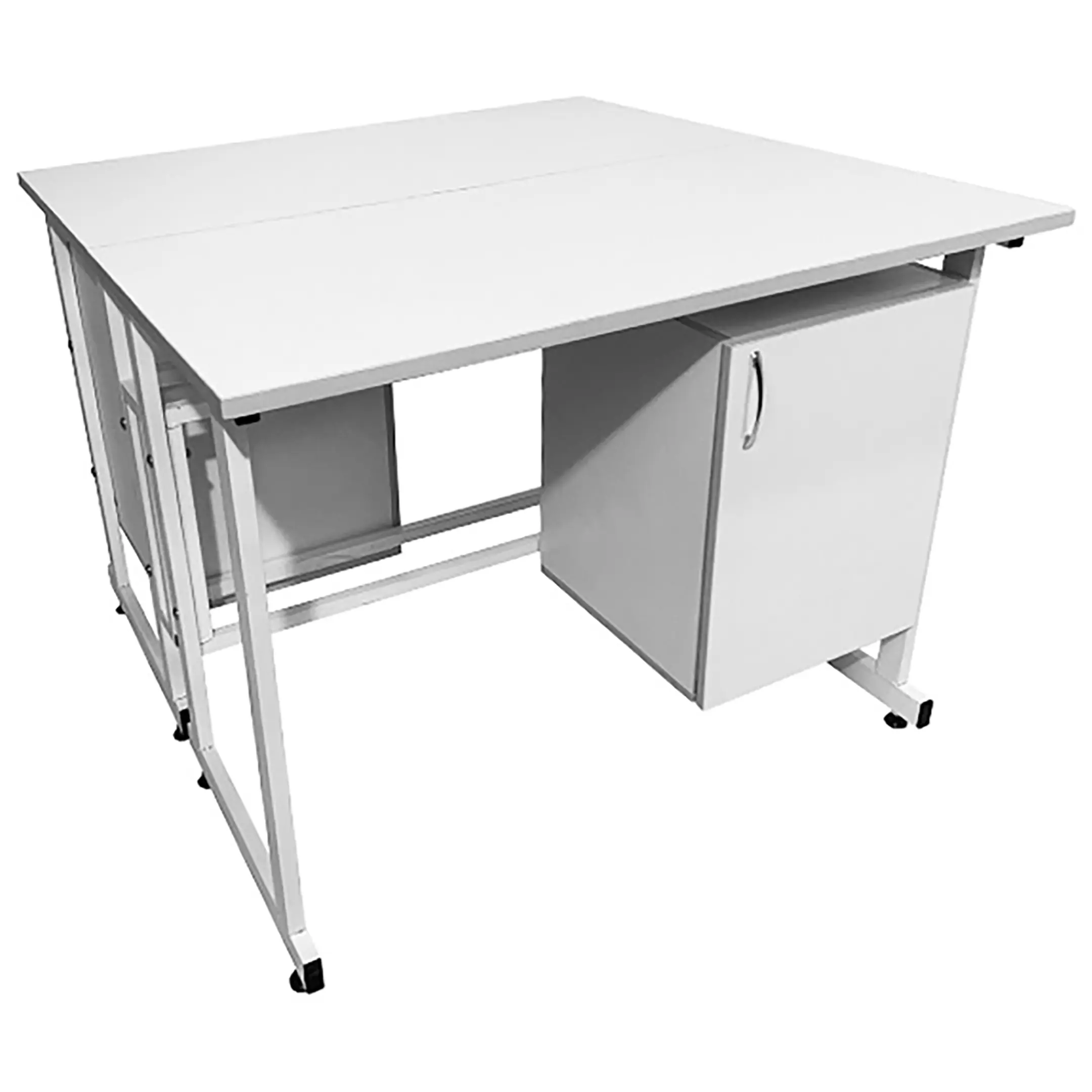 - Два полноценных рабочих места — две столешницы размером 1200х600 мм каждая (общий размер 1200х1200 мм) позволяют одновременно работать двум сотрудникам.