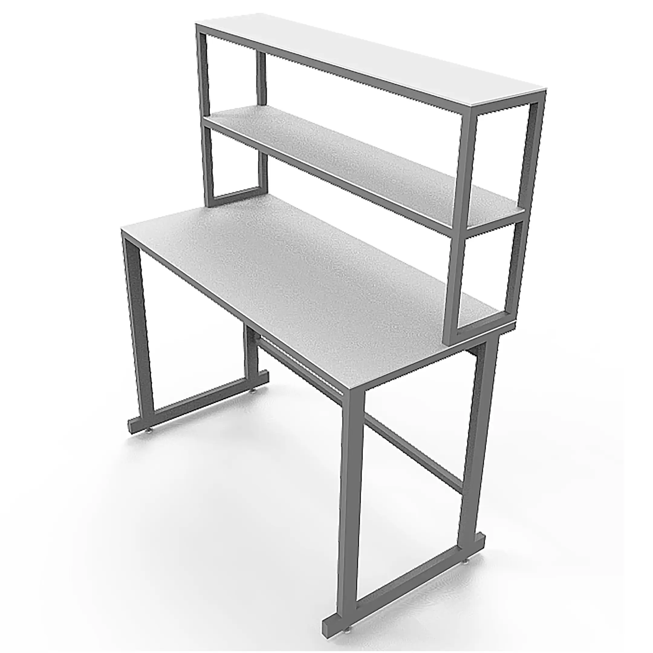 - Функциональная надстройка — две полки для дополнительного размещения оборудования, общая высота стола с надстройкой 1250 мм.
