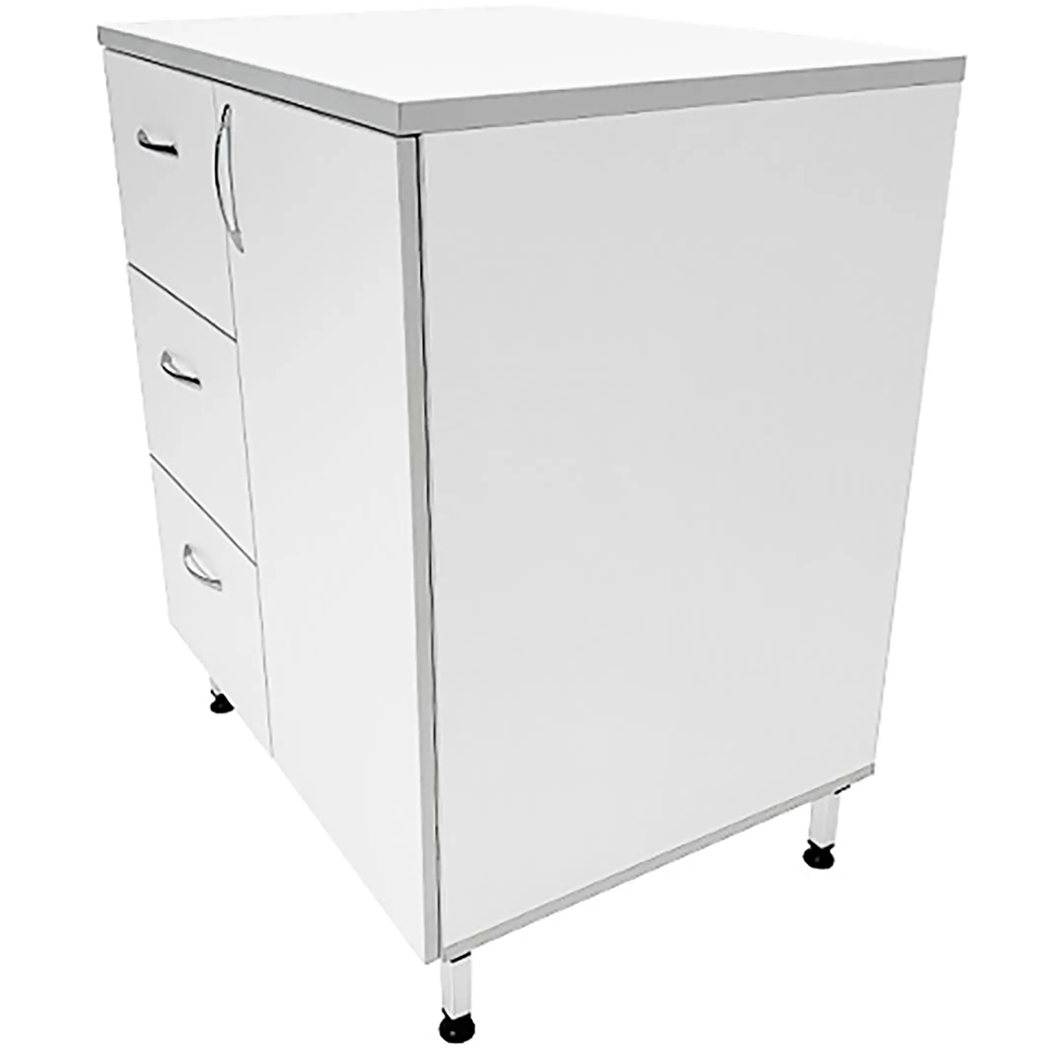 Стол-тумба лабораторная ТЛ 18.006 (белый) — это идеальное решение для организации хранения различных предметов, инвентаря и приборов в лабораториях или медицинских учреждениях. Модель оснащена тремя выдвижными ящиками (468х150х318 мм) и отделением с распашной дверкой и полкой (полка 373х570х16 мм). Каркас выполнен из ЛДСП толщиной 16 мм, столешница из ЛДСП толщиной 22 мм.