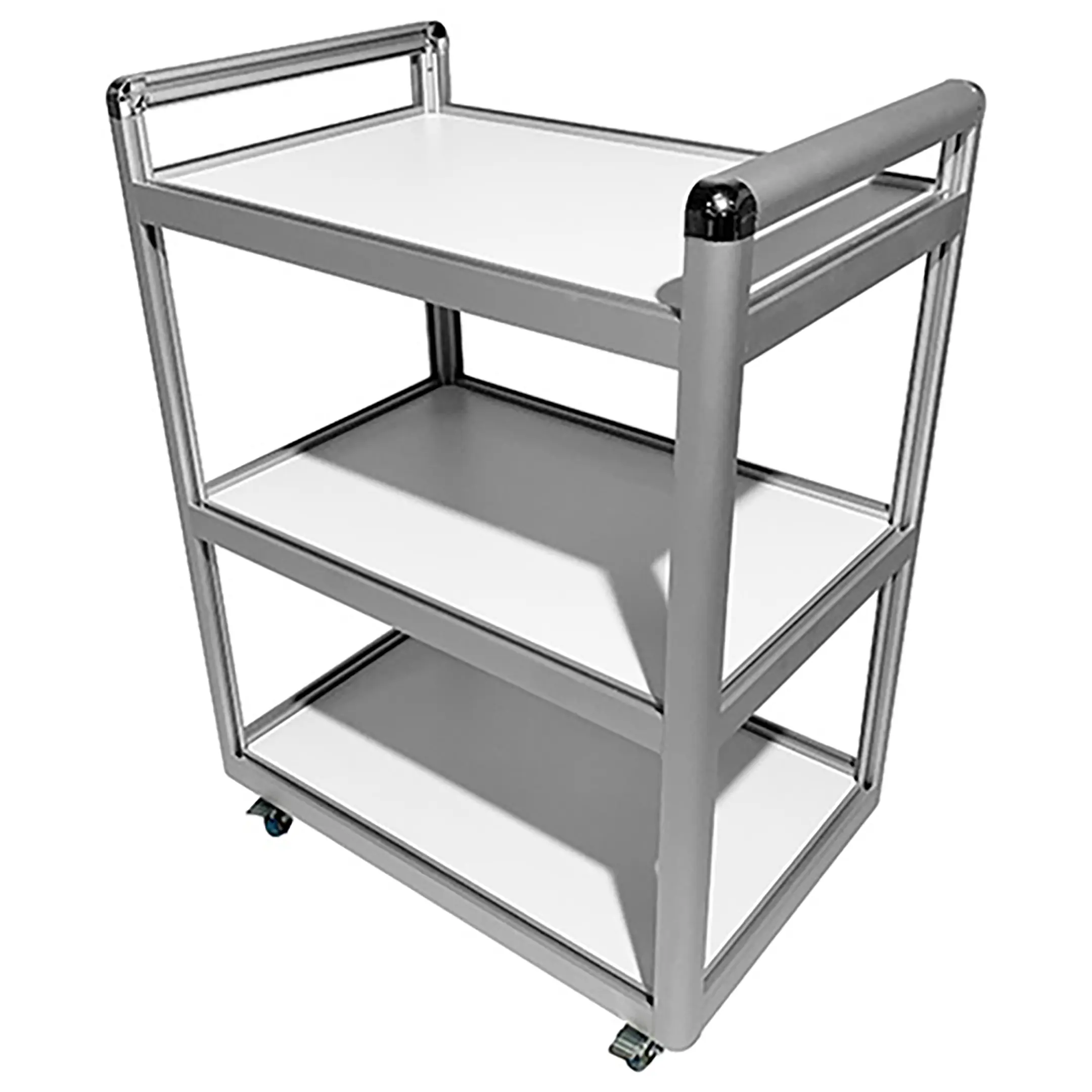 Столик лабораторный подкатной MED 14.001al (белый) является идеальным решением для временного размещения и удобного перемещения инструментов, предметов или приборов в медицинских учреждениях и лабораториях. Модель оснащена тремя полками из ЛДСП и двумя удобными ручками для транспортировки. Каркас выполнен из алюминиевого профиля.