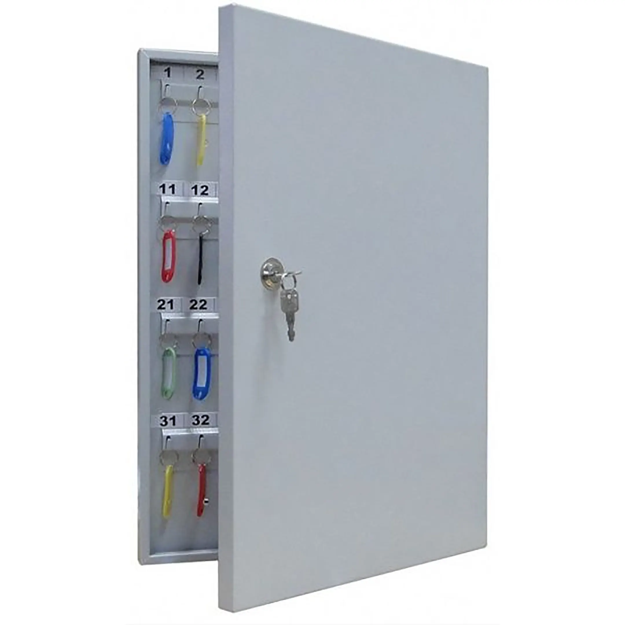 - Удобство для ежедневной работы и эргономичный дизайн — внутренняя панель с рядами пронумерованных крючков обеспечивает отличный обзор и легкий доступ. Комплектные брелки упрощают манипуляции с ключами. Настенный монтаж позволяет выбрать наиболее удобное и контролируемое место для установки.