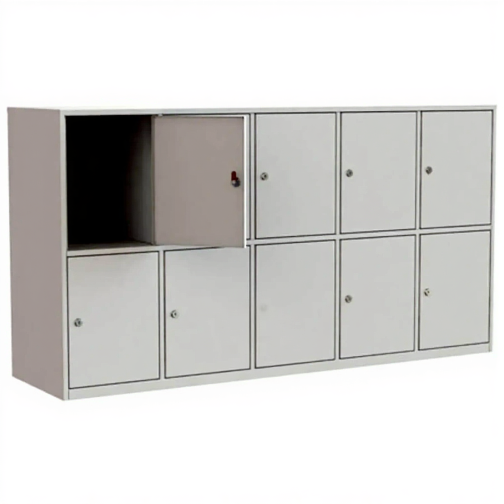 - Компактные размеры и вместительность — габариты 800x1500x400 мм позволяют разместить шкаф даже в ограниченном пространстве, при этом 10 отдельных ячеек обеспечивают удобное персональное хранение для группы людей.