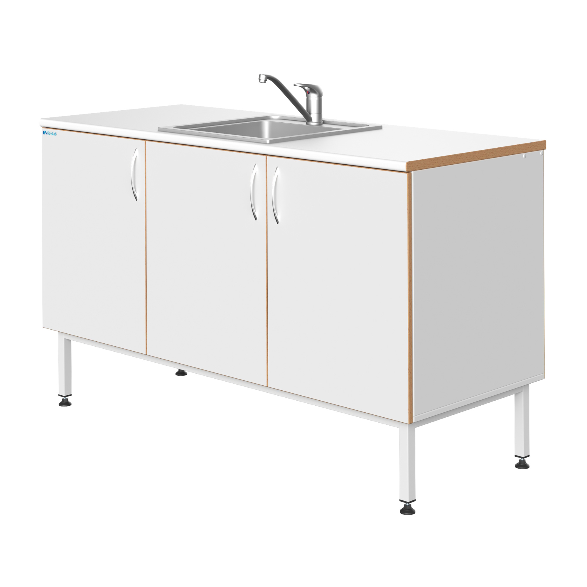 Мойка СОВЛАБ 1500 НЖ — это специализированное лабораторное оборудование, предназначенное для качественной и безопасной мойки лабораторной посуды, приборов и инструментов. Модель оснащена одинарной врезной чашей из нержавеющей стали, смесителем и всей необходимой арматурой для подключения к инженерным сетям. Тумба из влагостойкого ДСП установлена на прочный металлический каркас с регулируемыми опорами.