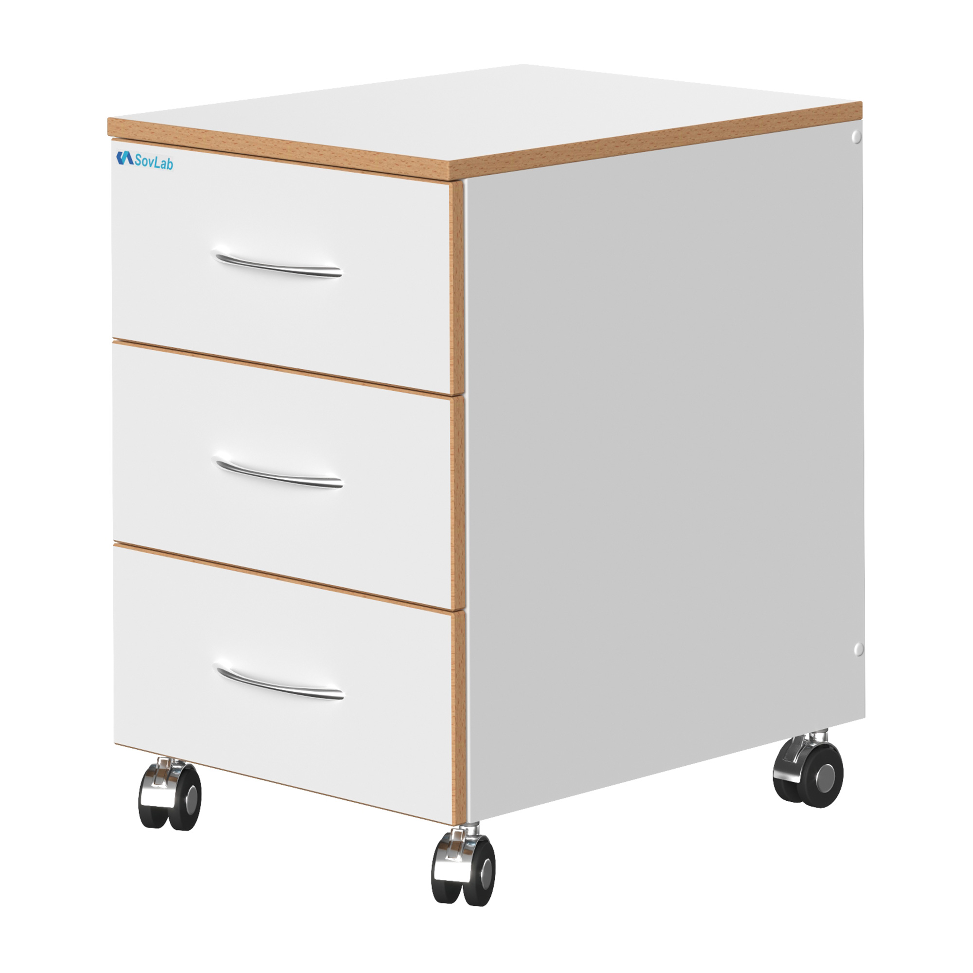 Тумба подкатная низкая СОВЛАБ 400 3-ТЯн — это мобильное лабораторное оборудование, предназначенное для хранения лабораторного оборудования, инструментов и мелкого инвентаря. Модель оснащена тремя выдвижными ящиками на телескопических направляющих полного выдвижения и колесными опорами со стопорами для удобного перемещения и фиксации.