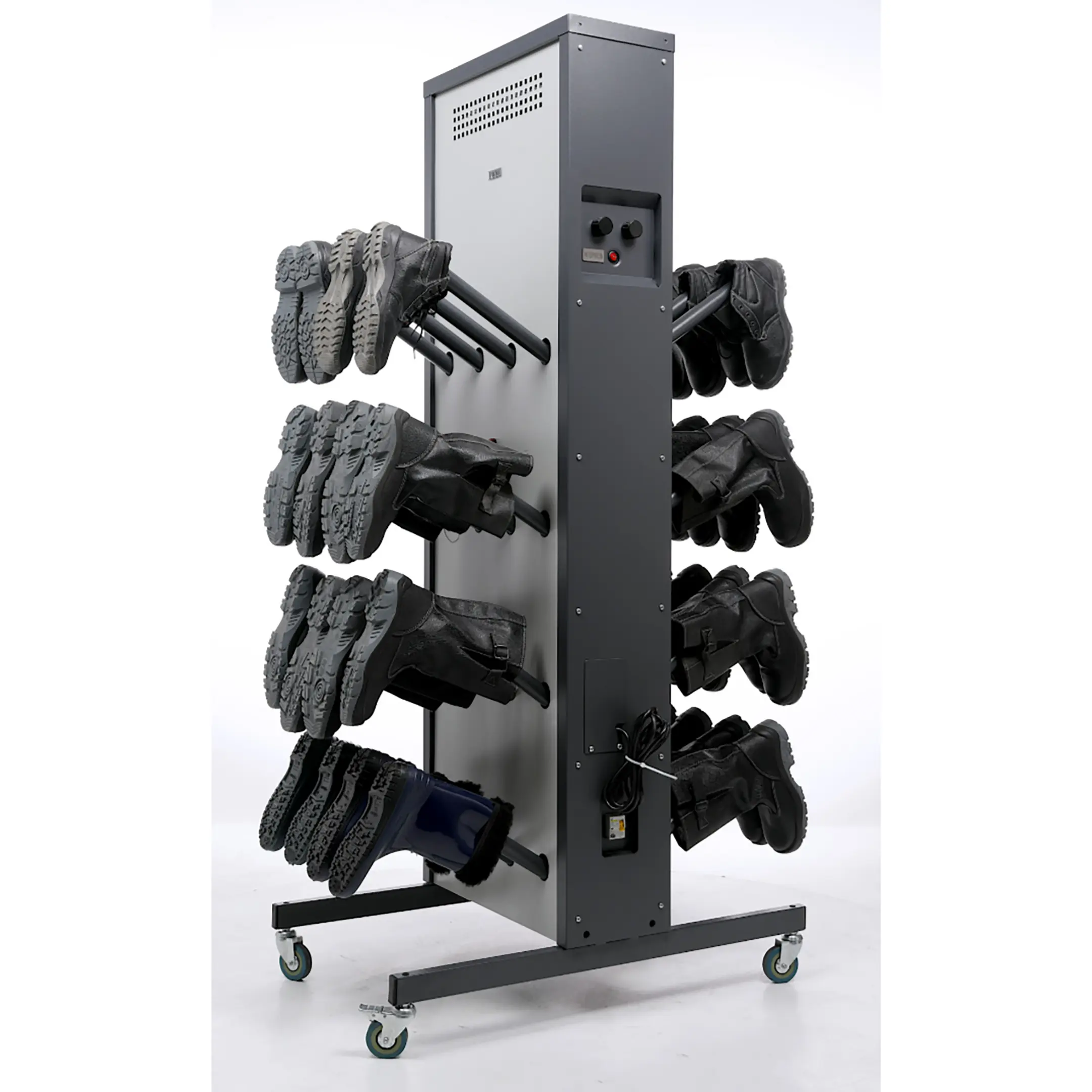 - Универсальность и удобство использования — модель подходит для различных типов помещений и может быть легко установлена в раздевалках, коридорах или специальных сушильных зонах. Удобная конструкция обеспечивает легкий доступ к обуви.