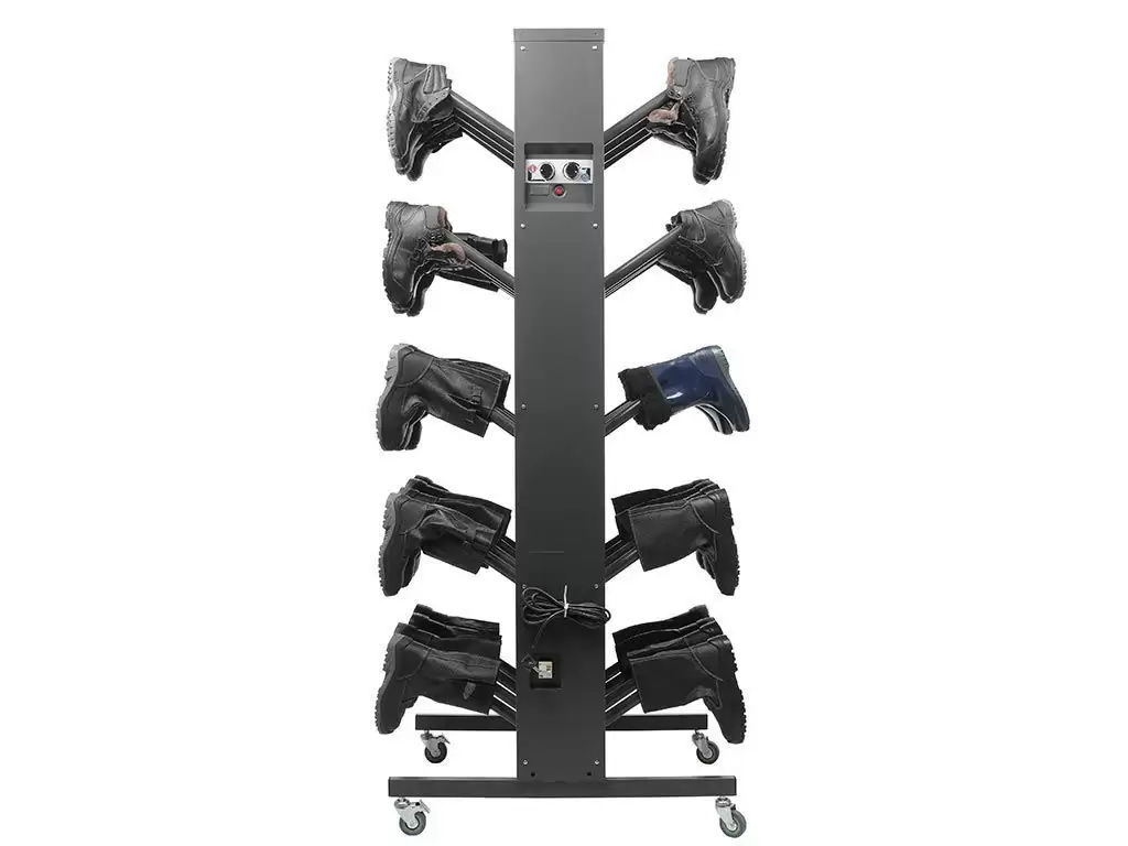 - Универсальность и удобство использования — модель подходит для различных типов помещений и может быть легко установлена в раздевалках, коридорах или специальных сушильных зонах. Удобная конструкция обеспечивает легкий доступ к обуви.
