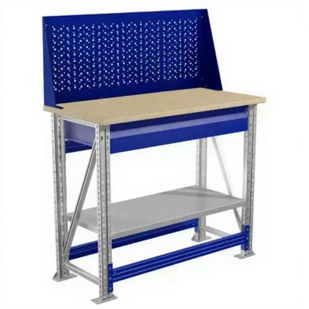 - Компактные размеры — столешница 1000х500 мм позволяет разместить верстак даже в небольших помещениях.