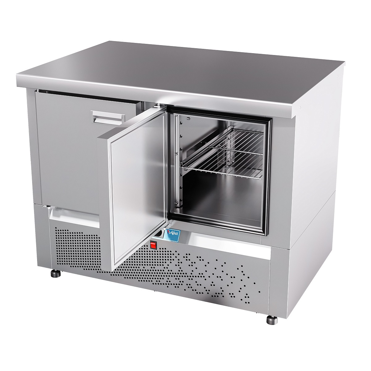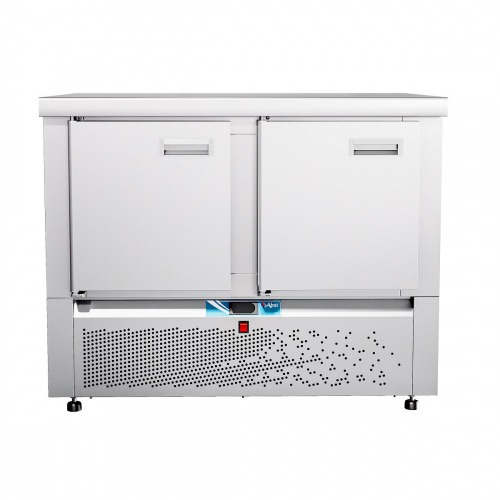 Особенности Электронная панель управления; потребление электроэнергии за сутки, кВт*ч, не более 3,36; климатический класс изделия - 5; поверхность стола - ровная неохлаждаемая поверхность без борта; толщина стенок 60 мм; холодильный агрегат расположен снизу, выдвижной для удобства обслуживания; хладагент - R404a; электронный блок управления с возможностью регулирования и поддерживания необходимой температуры; динамическое охлаждение - воздухоохладитель с вентилятором для равномерного распределение температуры внутри полезного объема; работа при температуре окружающей среды до +42 °C, относительной влажности от 40 до 70%; цельнозаливной пенополиуретаном корпус; автоматическая оттайка; 2 секции - две распашные двери с доводчиком; две регулируемые по высоте полки-решетка размером GN 1/1; уплотнитель с магнитной вставкой на двери для обеспечения полной теплоизоляци; передняя и задняя стенки легкосъемные; регулируемые по высоте ножки, которые могут опционально быть заменены на колеса (2 со стопором, 2 без стопора) без изменения высоты стола. Секции холодильных столов взаимозаменяемые. Предусмотрена возможность замены двери на секцию из одного или двух ящиков, и наоборот. Описание Стол холодильный низкотемпературный с нижним расположением агрегата предназначен для кратковременного хранения пищевых продуктов на предприятиях общественного питания и торговли. Рациональное использование рабочего пространства кухни за счет совмещения в одном изделии функции холодильного шкафа и рабочего стола.