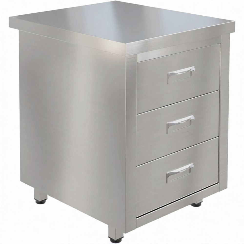 • 3 выдвижных ящика из нержавеющей стали;
