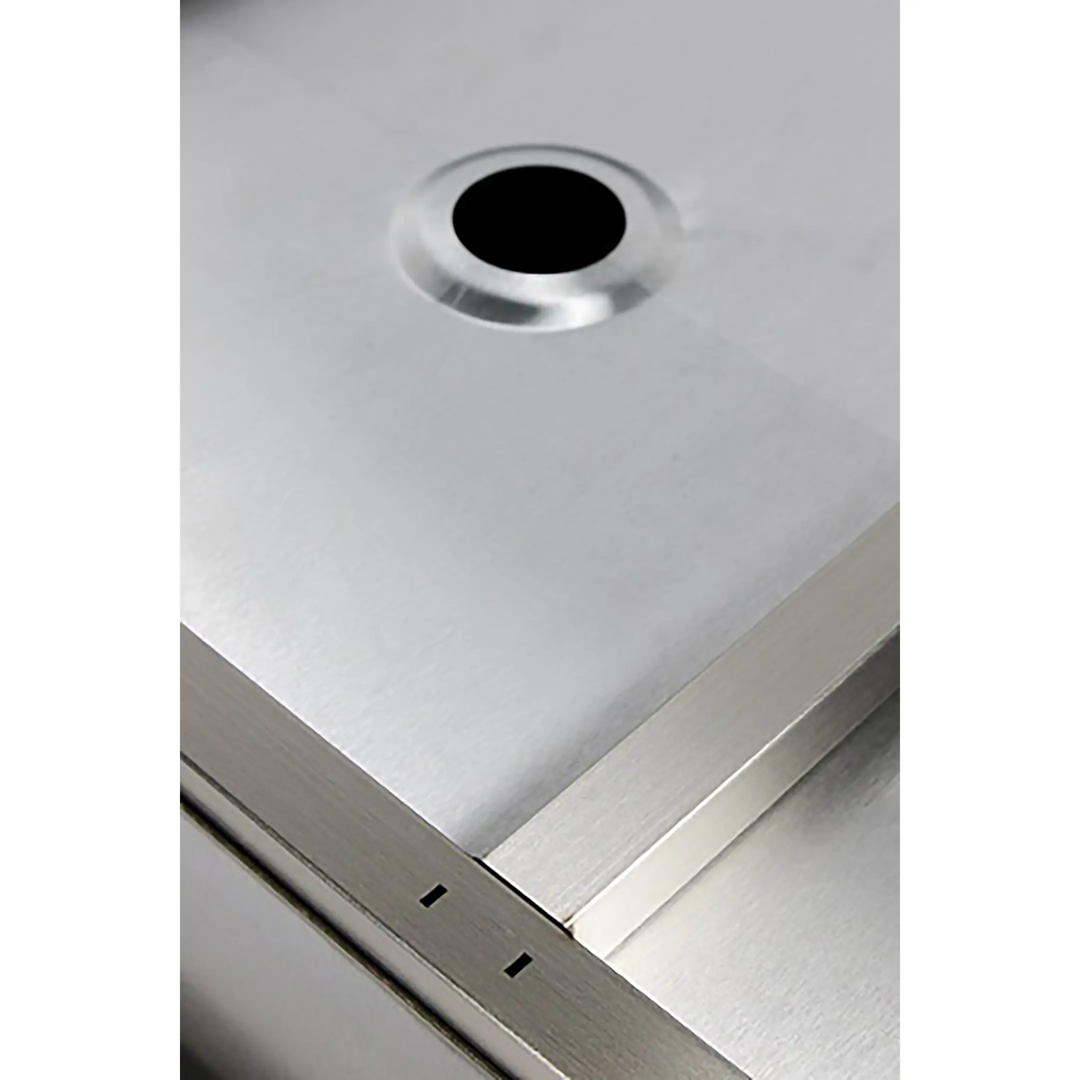 У данной моечной ванны площадка под смеситель не подразумевает отверстие под смеситель. Данное отверстие является дополнительной опцией, на заводе отверстие сделают в любом месте бесплатно. Согласуйте расположение отверстия с менеджером, потому что по умолчанию ванна поставляется без отверстия под смеситель.