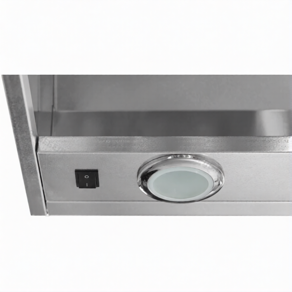 Зонт приточно-вытяжной универсальный ЗПУб 400х600х1000 «Base» (к-т светильников) используется на профессиональной кухне для повышения производительности общей системы вентиляции, удаления водяного пара из воздуха и более эффективного жироулавливания.