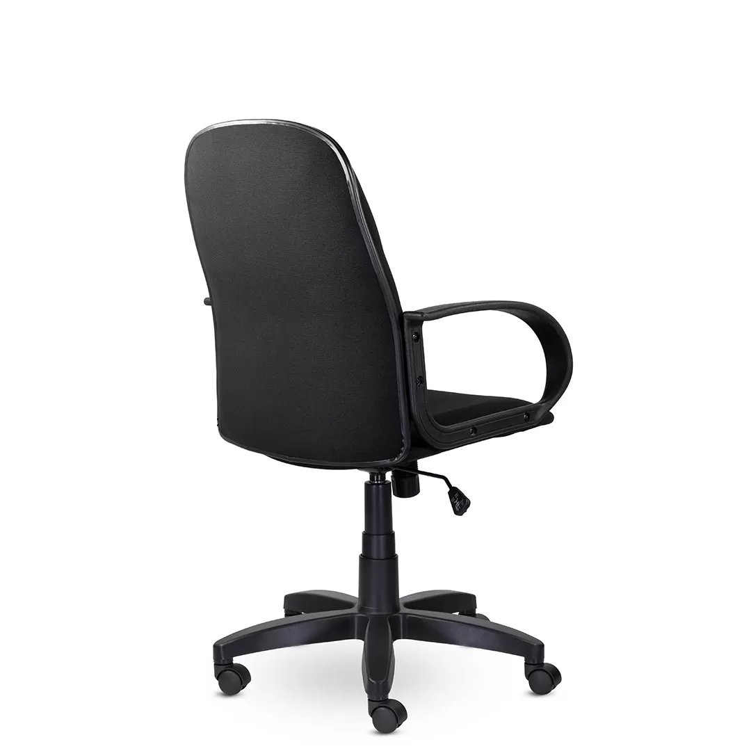 - Прочная пластиковая крестовина и подлокотники — устойчивость и долговечность конструкции, простая эксплуатация.