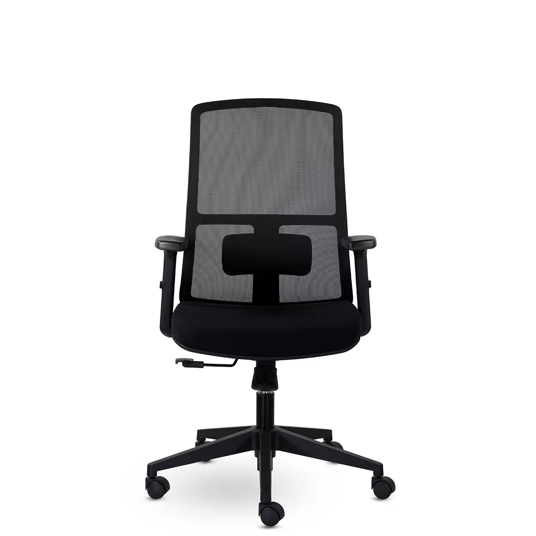 - Универсальный дизайн — чёрный пластиковый каркас придаёт креслу строгий и нейтральный внешний вид, подходящий для офисов любого стиля.