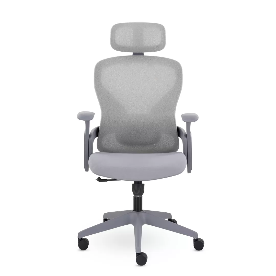 - Современный дизайн — серый каркас и лаконичные линии создают аккуратный, стильный и профессиональный внешний вид кресла.