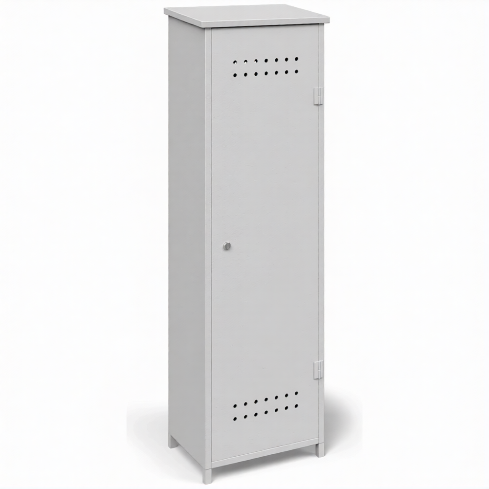 - Надежная антивандальная защита и сохранность имущества — усиленная сварная конструкция с массивными петлями, противосъемными штырями и возможностью установки врезных замков превращает шкаф в высокозащищенное хранилище. Это эффективно защищает дорогостоящий баллон и газ от краж, несанкционированного доступа и вандализма, особенно при уличной установке или размещении в проходных местах.