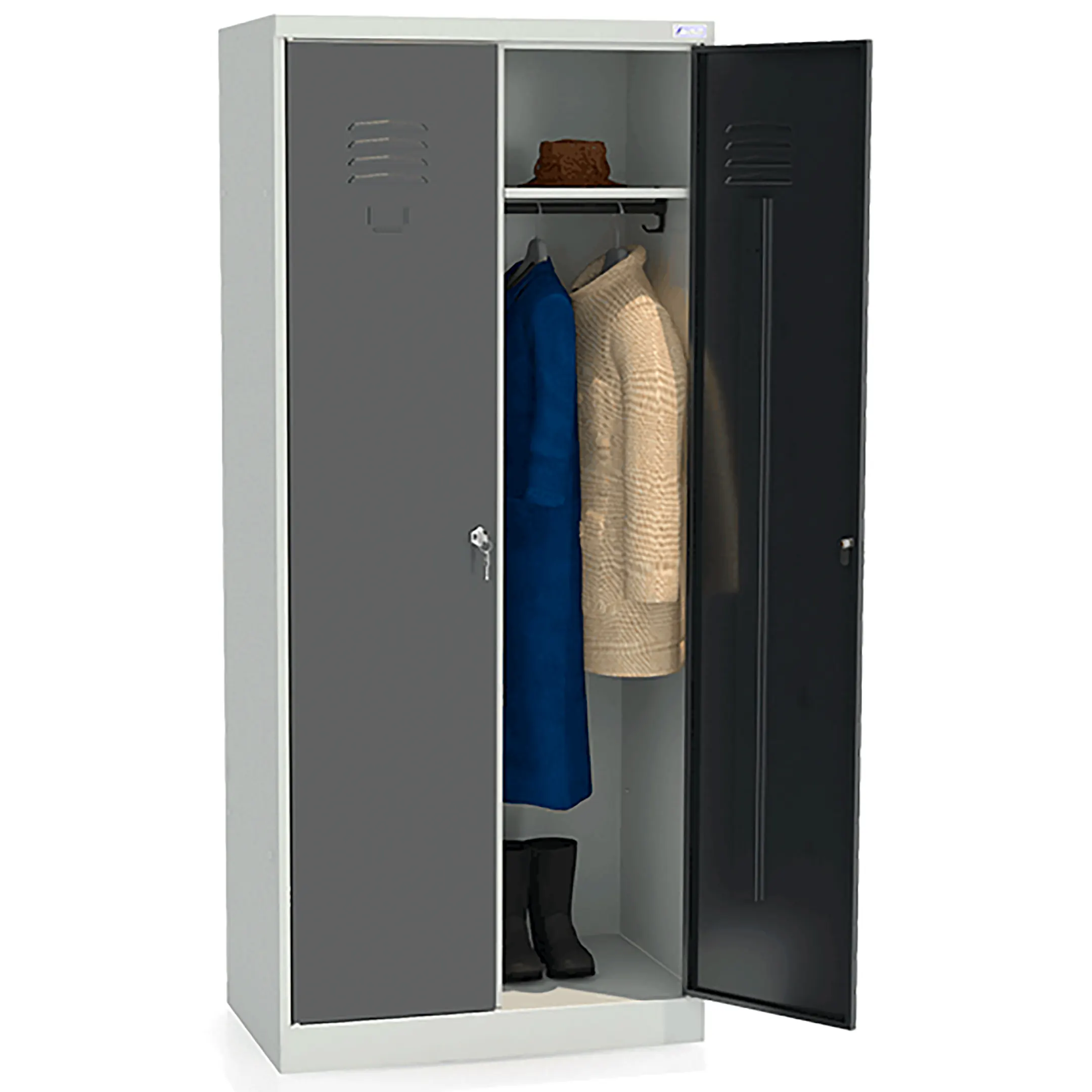 Шкаф для одежды ШР 22-800 сварной предназначен для хранения одежды и личных вещей в производственных помещениях и раздевалках различных предприятий, заводов, учреждений и спортивных клубах.