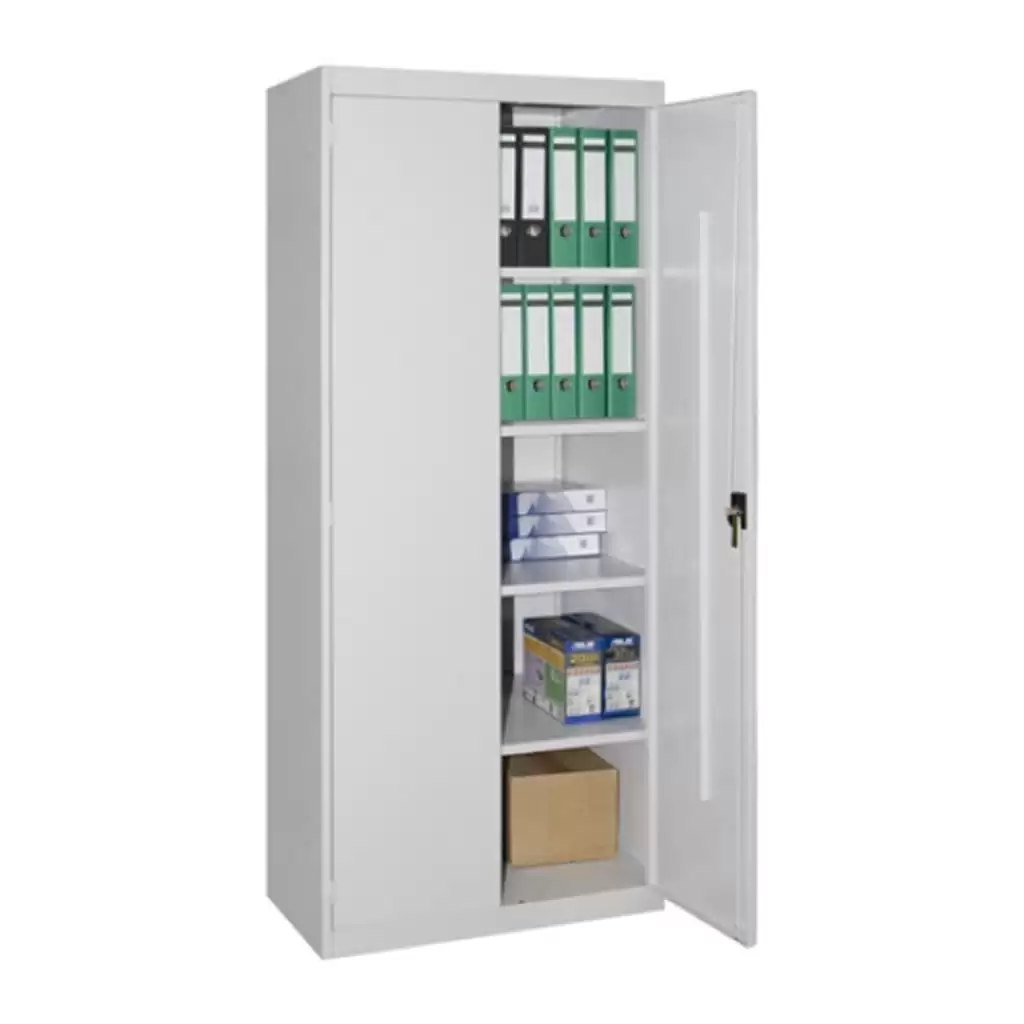 - Универсальность хранения — шкаф предназначен для размещения широкого спектра предметов: документов и папок формата А4, книг, канцелярских мелочей, средств для уборки или личных вещей сотрудников. Это помогает поддерживать порядок и организованность даже на небольшой территории.