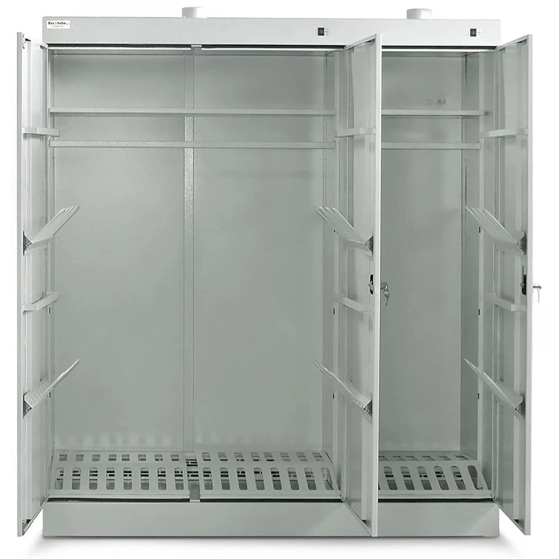 Шкаф сушильный ШС-8 Ш В на жидком теплоносителе — это профессиональное промышленное оборудование для эффективной и безопасной сушки спецодежды, рабочей формы, обуви и инвентаря на предприятиях, в медицинских, спортивных и учебных учреждениях. Модель использует жидкий теплоноситель для нагрева, обеспечивая высокую производительность, равномерную сушку и повышенный уровень пожаробезопасности.