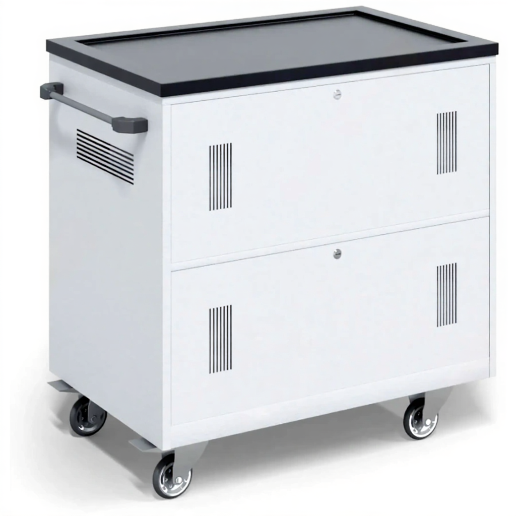 - Экстремальная вместимость — рассчитана на хранение и зарядку целого парка из 34 устройств, что делает её идеальной для оснащения полноценных классов или крупных рабочих групп.